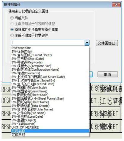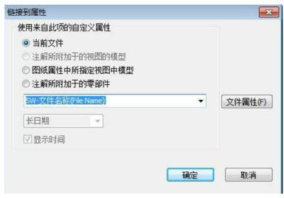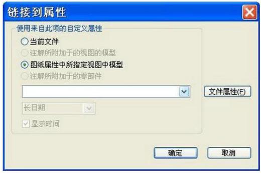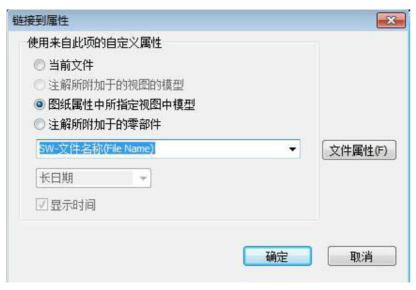 就會(huì)出現(xiàn)下面這個(gè)對(duì)話框:(注意:一般來講,我們?cè)诠こ虉D中使用的屬性都應(yīng)該來自圖中的模型,即.sldprt或.sldasm中定義的內(nèi)容,所以應(yīng)該選擇“圖紙屬性中所指定視圖中模型”這一項(xiàng)。只有少數(shù)某些屬性需要用“當(dāng)前文件”中的定義,如:工程圖文件)